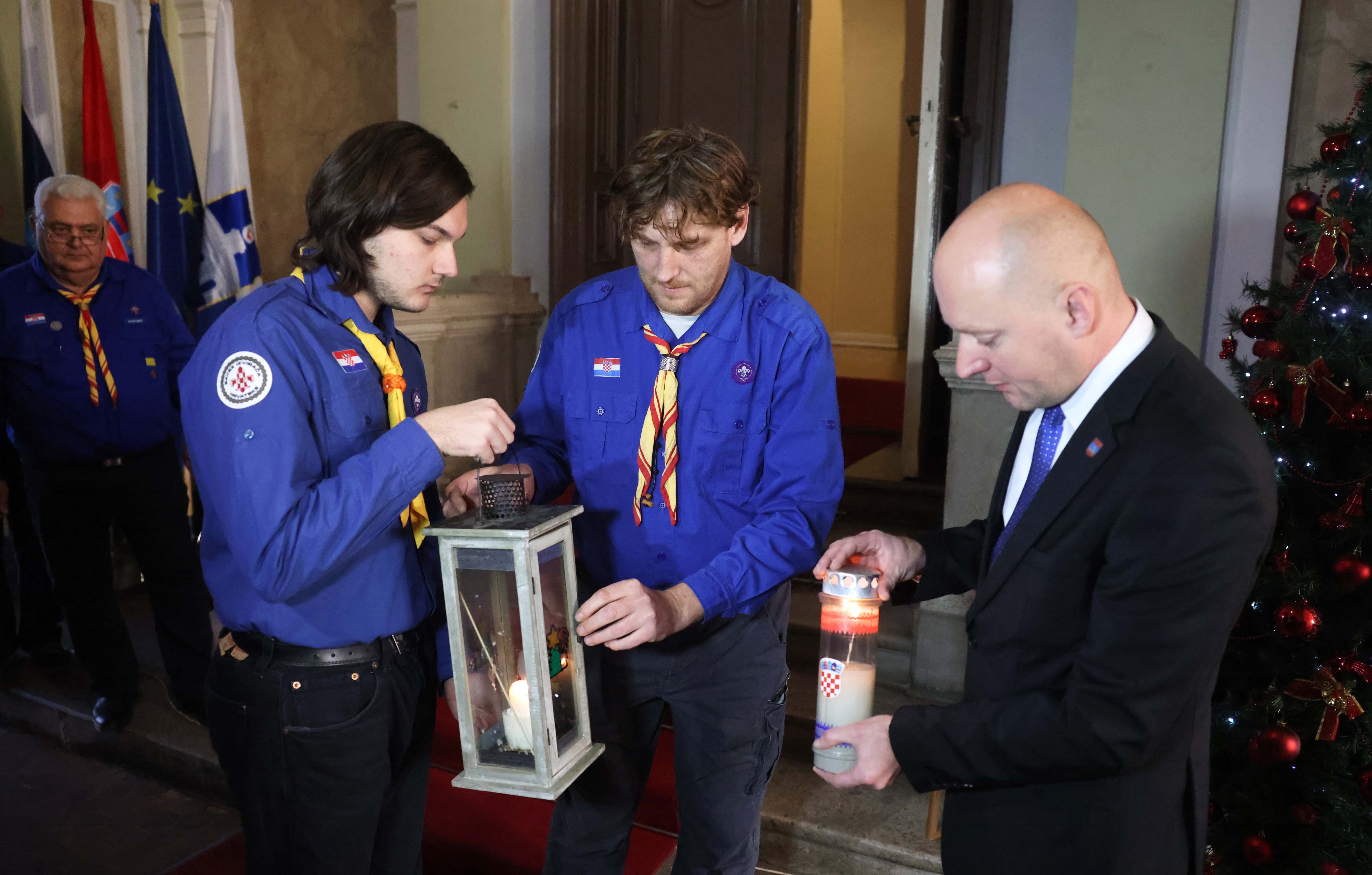 Izaslanstvo županijskog Saveza izviđača donijelo je danas Betlehemsko svjetlo mira, ljubavi i razumijevanja u sjedište Osječko-baranjske županije.